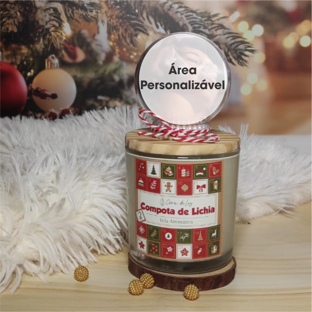 Vela Globo de Neve Personalalizável Aroma Compota de Lichia.
